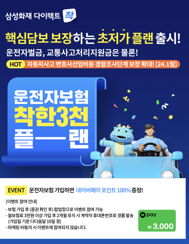 다이렉트 운전자보험 인기순위 TOP5(2024최신)