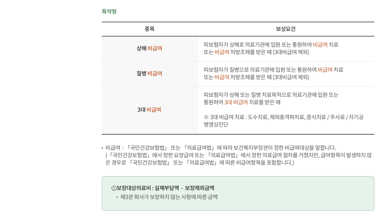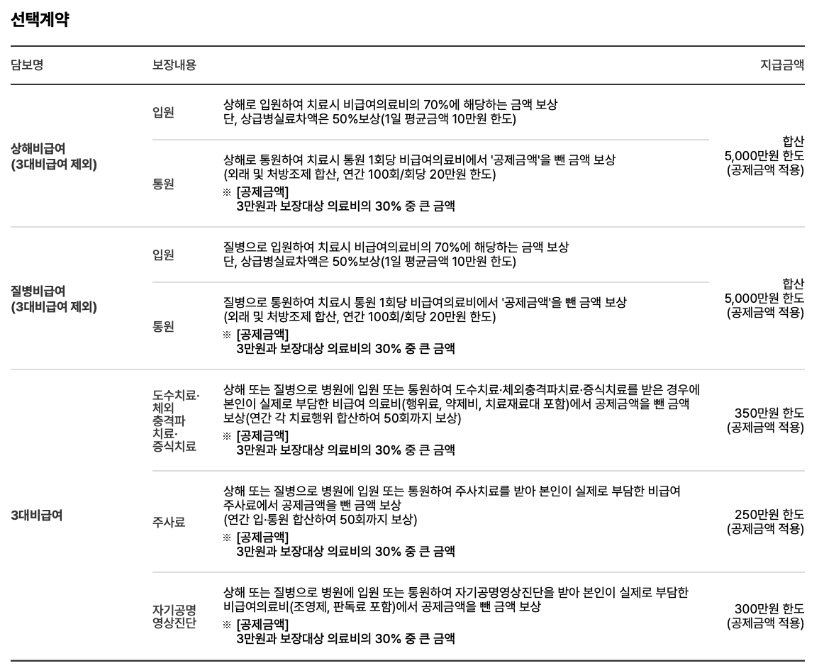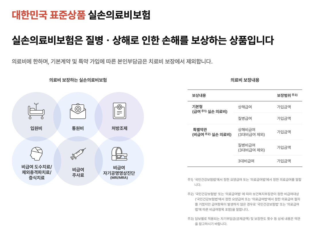 - 전문의 진료비, 비급여 진료비, 약제비, 치료재료비 등을 실비로 보상해줍니다.