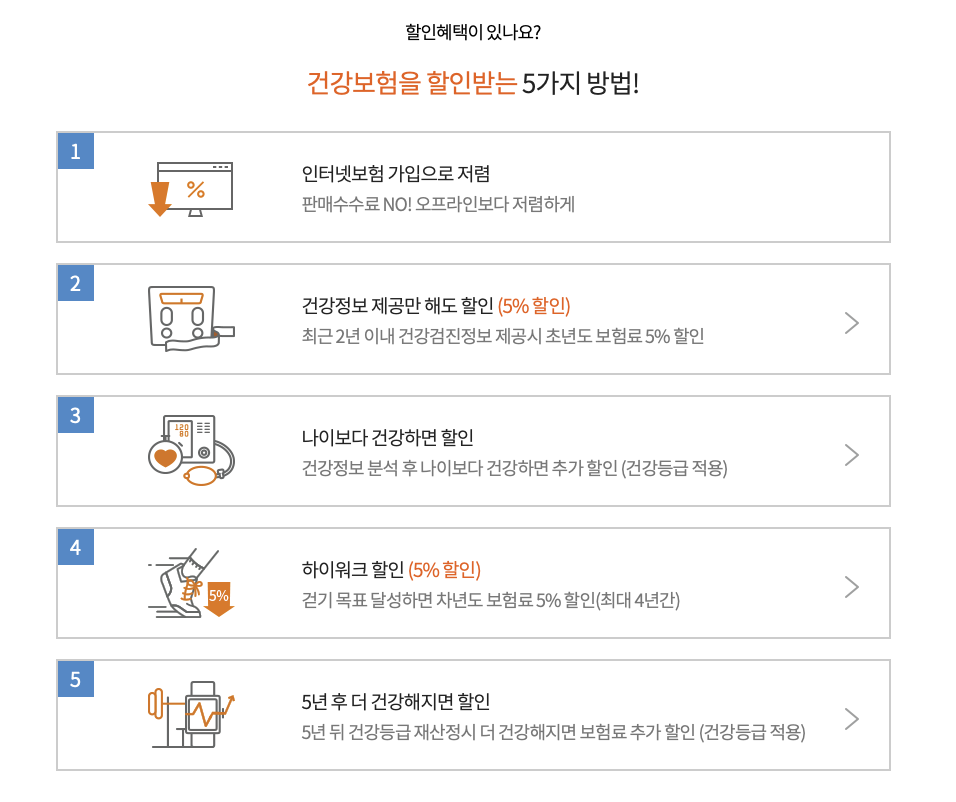- 가족할인, 연령할인, 건강할인 등을 적용받을 수 있습니다.