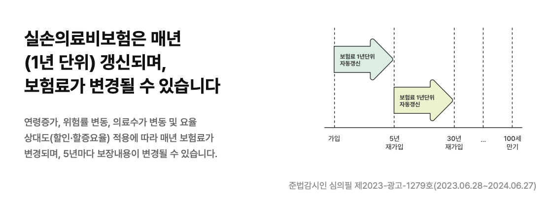 - 보험료가 연령별로 분리되어 있어 나이가 들어도 보험료가 급격히 오르지 않습니다.