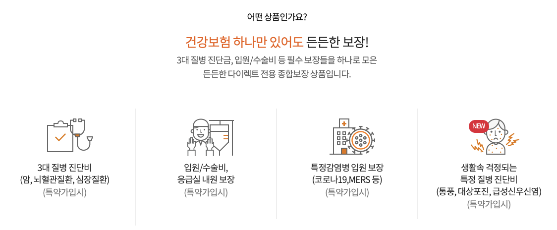 - 장기입원, 중증질병, 수술, 특수치료 등에 대해 추가로 보상해줍니다.