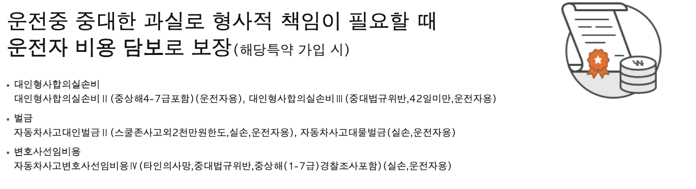 한화운전자보험은 자동차 사고로 인한 운전자의 상해, 사망, 벌금, 변호사선임비용 등을 종합적으로 보장하는 운전자보험입니다. 자동차보험이 보장해주지 못하는 형사적 책임을 보장받을 수 있으며, 경찰조사 단계부터 변호사선임비용을 실손으로 보장해줍니다. 또한, 보복운전자피해보장, 응급실내원치료비, 골절로 인한 부목치료비 등 다양한 담보를 선택할 수 있습니다.