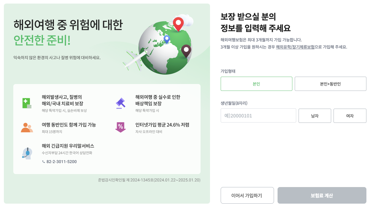 3. 여행 정보 입력: 여행 기간, 여행지, 보장 내용 등을 입력합니다.