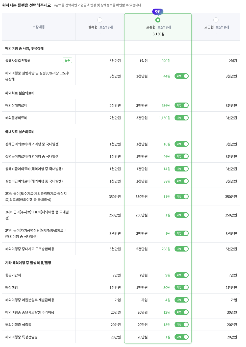 2. 보험 상품 선택: 원하는 여행자 보험 상품을 선택합니다.