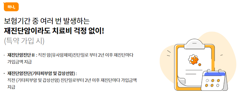 현대해상 다이렉트에서는 간편하게 보험료를 조회하실 수 있으며, 35세 남성 기준으로 월 19,180원부터 시작하는 저렴한 보험료를 제공합니다. 암 진단 시 유사암을 제외하고 최대 1천만원의 금액이 보장되며, 재진단암의 경우 최대 2천만원까지 보장됩니다.