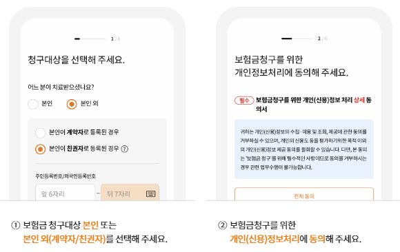 - 온라인 청구의 경우, 현대해상 홈페이지에서 회원가입 후 로그인하여 청구할 수 있습니다.