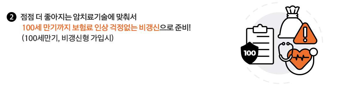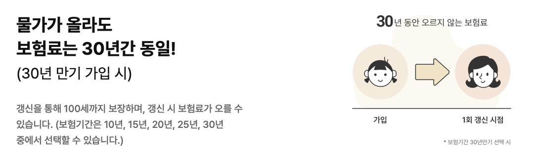 이 상품은 비갱신형으로, 계약자는 처음 보험료 그대로 100세까지 보장을 받을 수 있습니다. 또한, 암 수술이 필요할 때마다 계속해서 보장받을 수 있는 '계속보장' 혜택도 포함되어 있습니다.