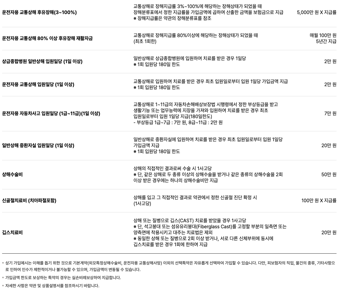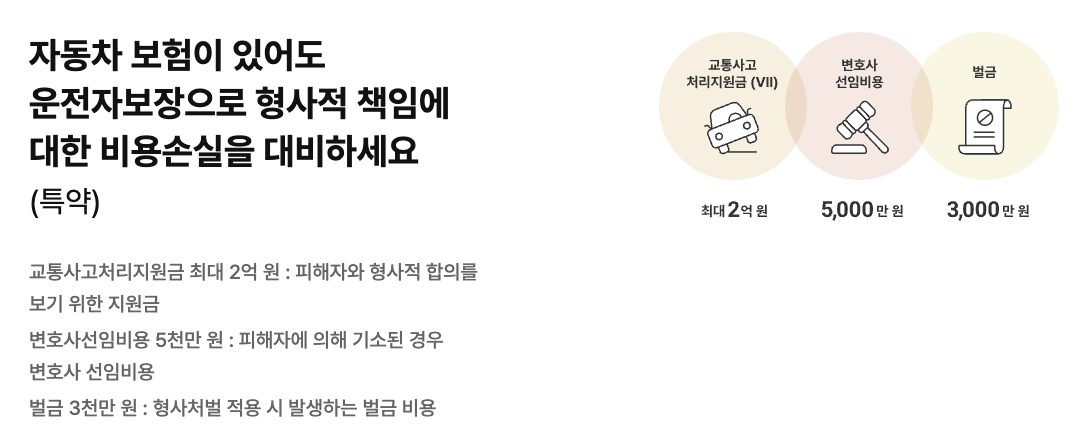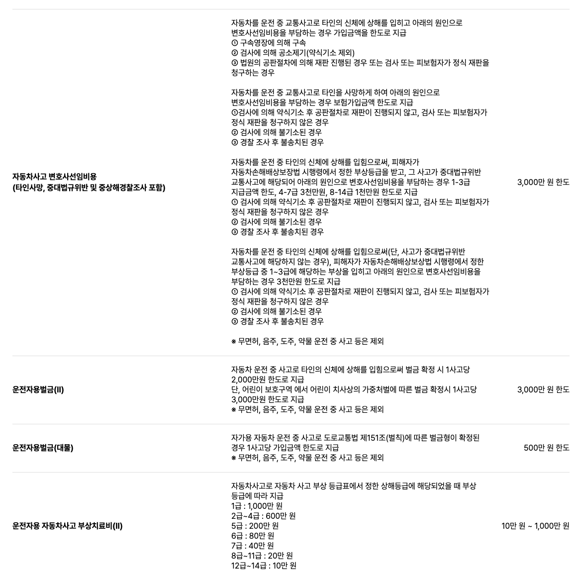 특히, 2020년 3월 25일부터 시행된 민식이법에 따라 어린이보호구역에서 안전운전 의무 위반으로 사망이나 상해사고를 일으킨 경우, 무기 또는 3년 이상의 징역, 상해를 입은 경우 1년 이상 15년 이하의 징역이나 500~3000만 원 이하의 벌금을 부과하게 되는데, 메리츠 운전자보험은 이러한 형사상의 책임을 지기 위한 벌금으로 최대 3천만 원까지 보장받을 수 있습니다.