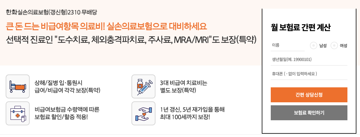 한화손해보험 실손의료보험 : 저렴한 실손의료비 단독상품!