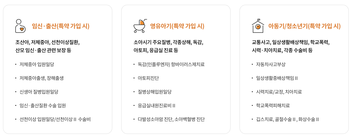 특히, 신생아 플랜은 출생 전후로 아이와 산모를 든든하게 보호하는데 초점을 맞추고 있으며, 산모의 출산 위험과 태아에 대한 보장을 제공합니다. 신생아 입원, 선천성 이상 입원, 수술 등에 대한 보장이 특약 가입 시 가능하며, 산모의 병력에 따라 가입이 거절될 수도 있음을 유의해야 합니다.