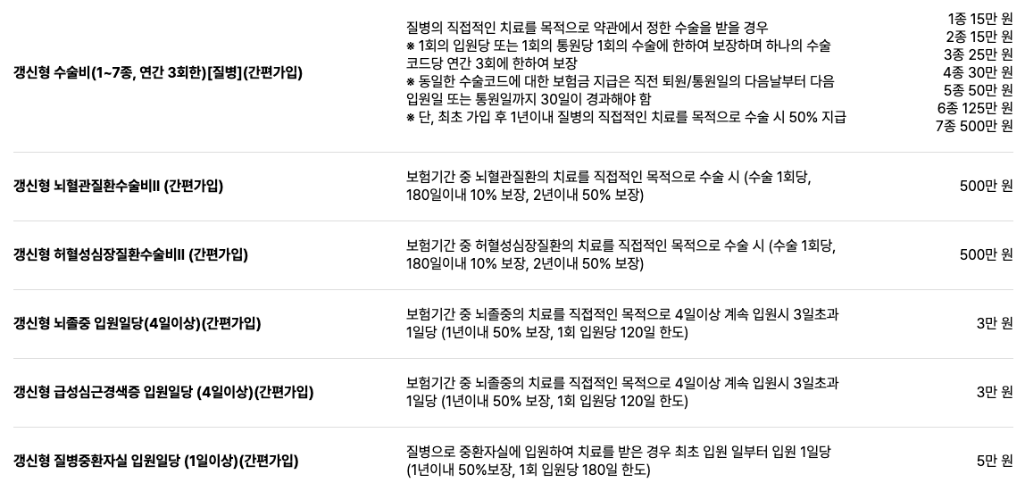 이 보험은 갱신 주기가 10년으로 설정되어 있어, 장기적인 보장을 원하는 고객에게 적합합니다. 간병인 사용일당과 간병인지원일당의 두 가지 옵션을 제공하여, 고객의 필요에 맞게 선택할 수 있는 유연성을 제공합니다. 간병인 사용일당은 실제로 간병인을 사용했을 때 지급되며, 간병인지원일당은 보험사가 간병인을 지원할 경우에 해당합니다.