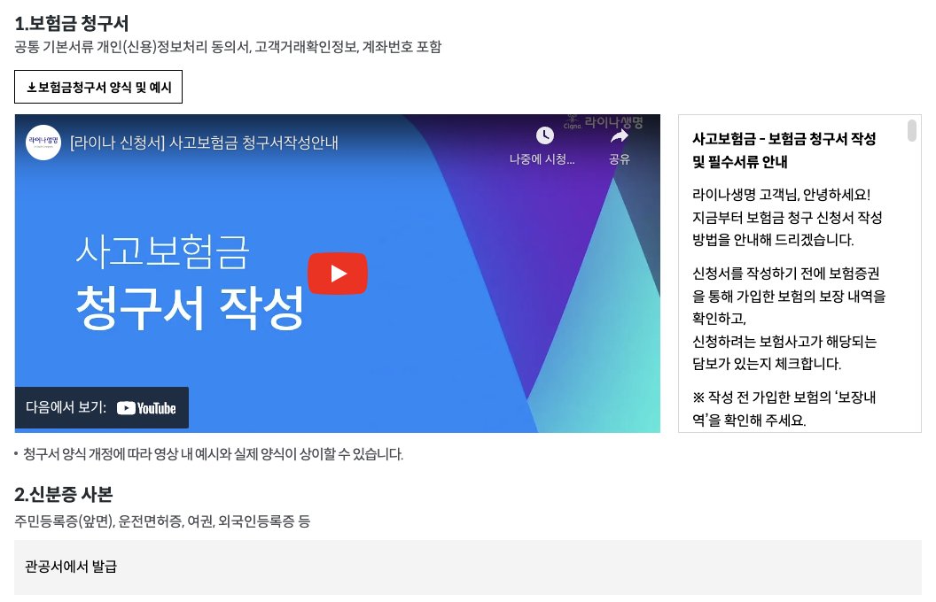 보험금 청구는 때때로 복잡할 수 있으므로, 청구서류 작성에 있어서는 세심한 주의가 필요합니다. 또한, 라이나생명 고객센터를 통해 추가적인 도움을 받을 수 있습니다. 청구서류 작성에 대한 자세한 안내는 라이나생명의 공식 웹사이트에서 제공되는 안내 영상을 참고하시는 것이 도움이 될 수 있습니다. 보험금 청구 절차를 올바르게 이해하고 준비한다면, 필요한 보상을 신속하고 원활하게 받을 수 있을 것입니다.