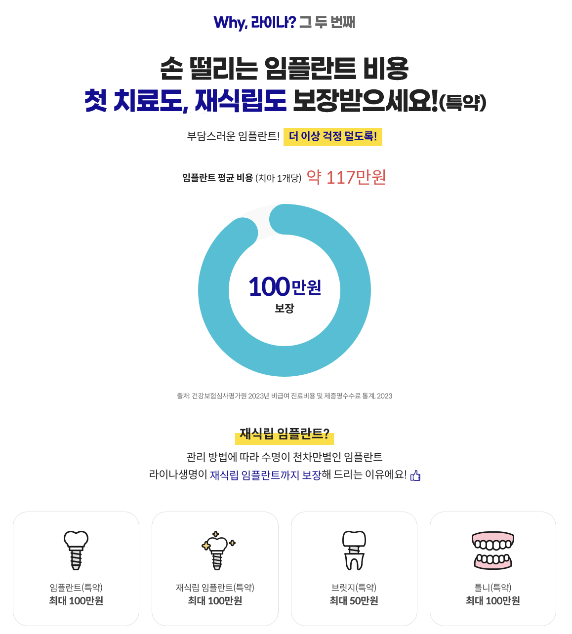 치아 건강은 일상의 질을 결정짓는 중요한 요소입니다. 라이나생명 치아보험은 이러한 필수적인 치과 치료를 위한 경제적 부담을 줄여주는 상품으로, 임플란트부터 크라운, 일반적인 충전치료에 이르기까지 다양한 치과 치료를 보장합니다. 특히, 라이나생명의 치아보험은 갱신 없이 일정 기간 동안 보험료가 인상되지 않으며, 치료 횟수에 제한이 없어 많은 이들에게 선호되는 보험 상품입니다. 이 보험은 치아 건강을 유지하고자 하는 모든 연령대에 적합하며, 치과 치료에 대한 걱정 없이 건강한 일상을 영위할 수 있도록 돕습니다. 오늘은 라이나생명 치아보험 보장내용, 청구서류, 임플란트, 충치 보장 알아보기에 대해 알려드리겠습니다.