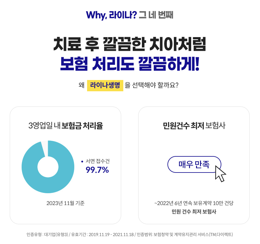 라이나 치아보험은 다양한 치과 치료에 대한 보장을 제공하므로, 치아 건강에 대한 걱정 없이 필요한 치료를 받을 수 있는 장점이 있습니다. 또한, 라이나생명은 치아보험 분야에서 오랜 경험과 높은 신뢰도를 가지고 있어, 많은 사람들이 선호하는 보험사 중 하나입니다.