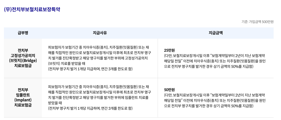 특히, 임플란트의 경우, 재식립 임플란트도 보장되며, 충전치료는 개수 제한 없이 보장됩니다. 앞니와 송곳니의 보철치료도 보장받을 수 있으며, 스케일링과 잇몸질환 치료에 대해서도 보장을 받을 수 있습니다. 또한, 신경치료와 영구치 발거치료도 보장 범위에 포함됩니다.