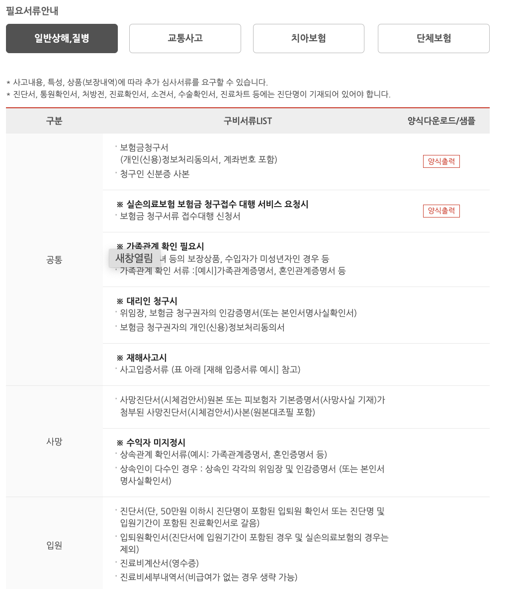 또한, 상황에 따라 추가적인 서류가 요구될 수 있습니다. 예를 들어, 질병이나 상해로 인한 청구의 경우 진단서, 통원 확인서, 처방전, 진료 확인서, 소견서, 수술 확인서 등이 필요할 수 있으며, 이들 문서에는 진단명이 명확히 기재되어 있어야 합니다. 사망과 관련된 청구의 경우에는 사망진단서나 사망사실이 기재된 기본증명서 등이 필요할 수 있습니다.