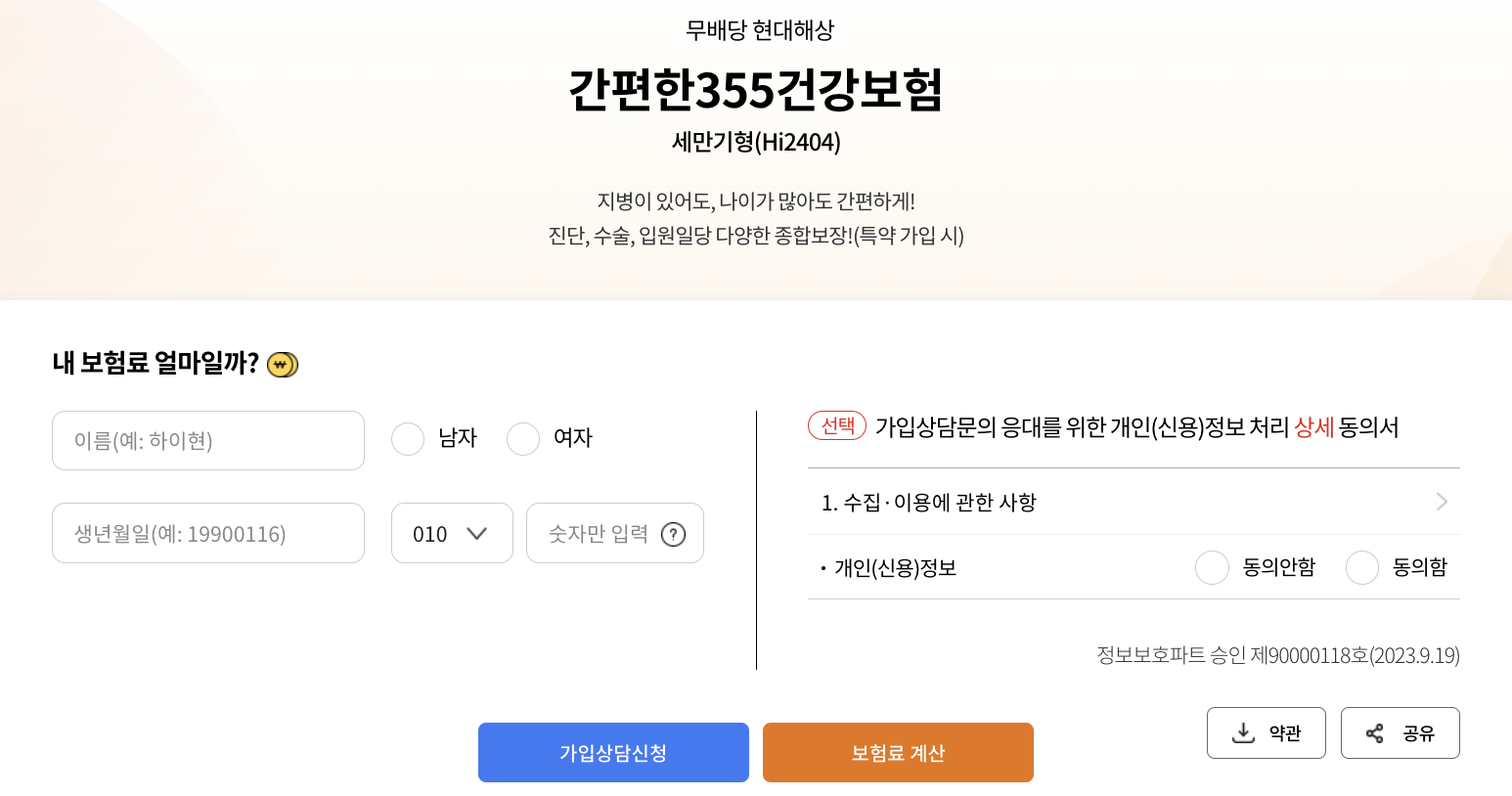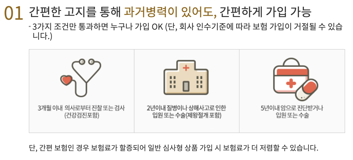 현대해상 355건강보험은 간편한 심사 절차를 통해 다양한 위험을 최대 100세까지 보장하는 상품입니다. 이 상품은 특히 유병자나 고령자도 가입할 수 있는 기회를 제공하며, 3개월 이내에 의사로부터 입원이나 수술, 재검사 소견이 없고, 5년 이내에 상해나 질병으로 인한 입원이나 수술이 없으며, 5년 이내에 6대 질병(암, 협심증, 심근경색, 뇌졸중, 간경화, 심장판막증)을 진단받거나 입원, 수술한 이력이 없는 경우 가입이 가능합니다.