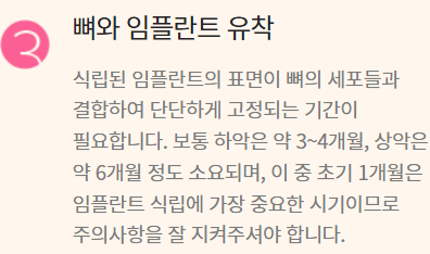 임플란트 수술 후 사후점검기간을 주는데 보철 후 3개월 이내까지만 가능하며 이후에는 보험 적용이 되지 않습니다.