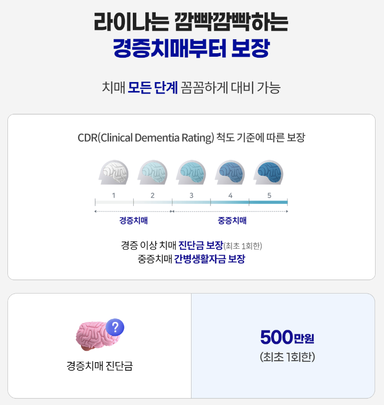 - 다양한 보장 범위: 경증 치매부터 중증 치매까지 폭넓게 보장합니다.