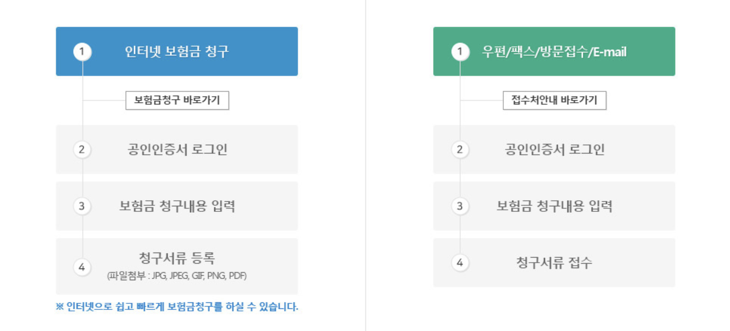 - 온라인 청구: MG손해보험 홈페이지 또는 앱에서 공동인증서 로그인 후 간편하게 청구할 수 있습니다.