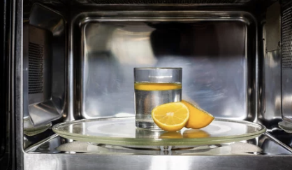 - 레몬 반 개를 썰어 전자레인지용 용기에 담고 물 1컵을 부어 5분간 가열합니다.