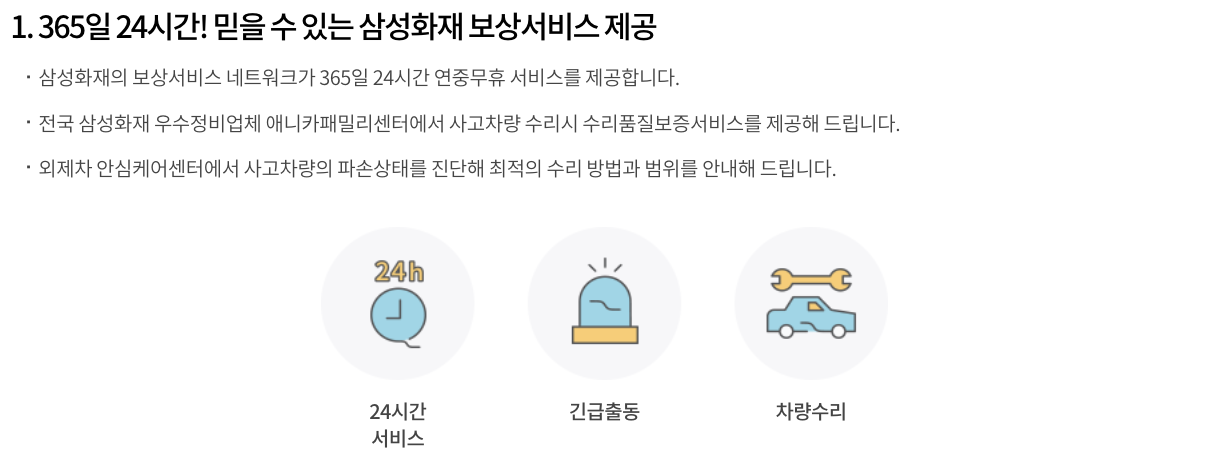 - 24시간 긴급출동 서비스: 언제 어디서든 사고 발생 시 24시간 긴급출동 서비스를 이용할 수 있습니다.
