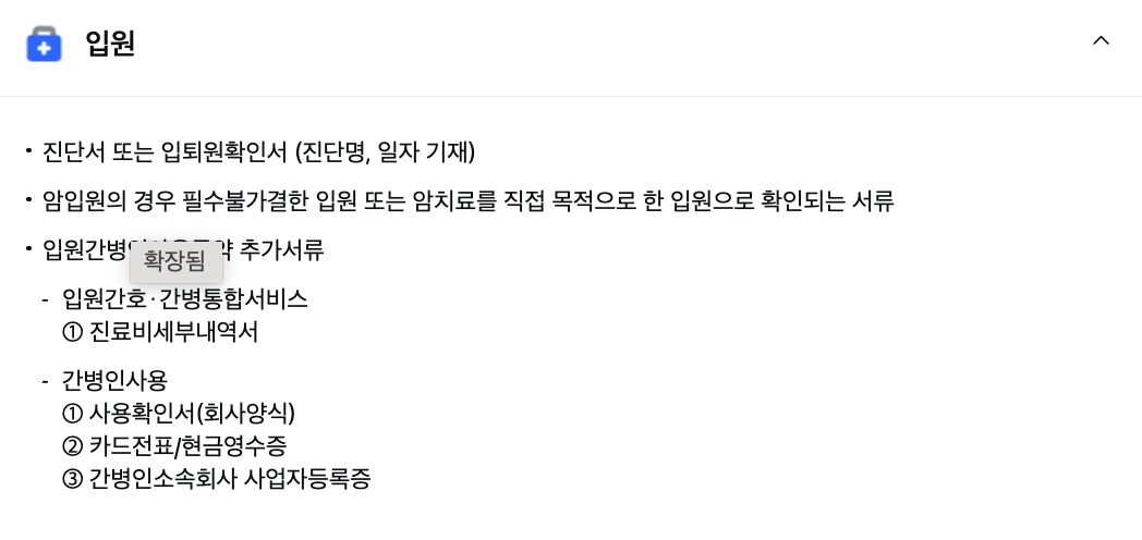 - 입퇴원 확인서: 입원 치료를 받은 경우 필요한 서류입니다.