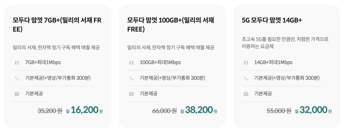 - 5G 요금제 부족: 5G 요금제 종류가 적거나 비싼 편입니다.