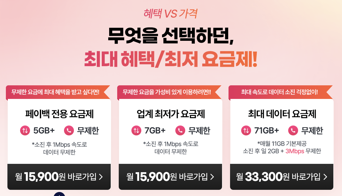- 다양한 요금제: 데이터, 통화, 문자 사용량에 따라 다양한 요금제를 선택할 수 있습니다.