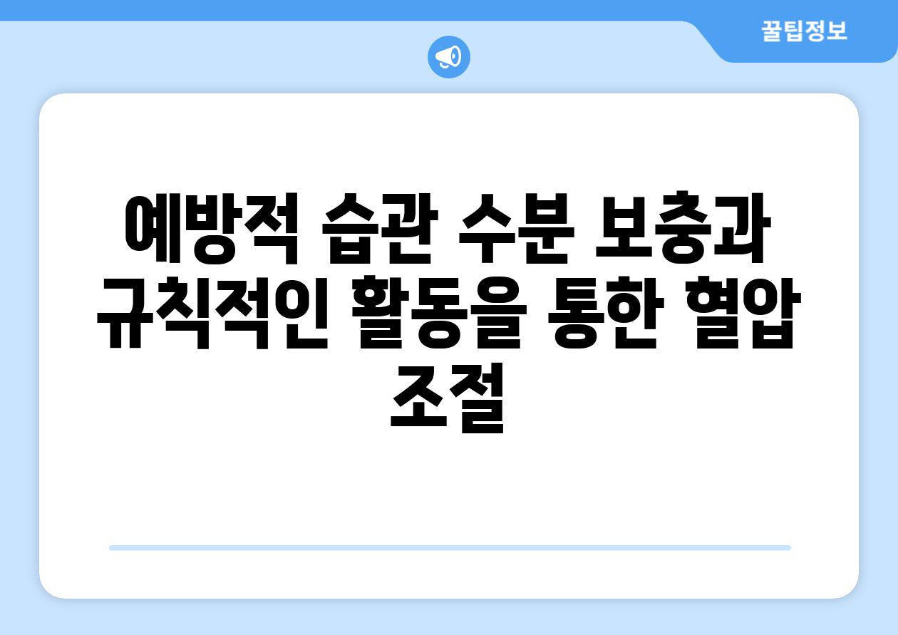 | 예방적 습관 수분 보충과 규칙적인 활동을 통한 혈압 조절 |