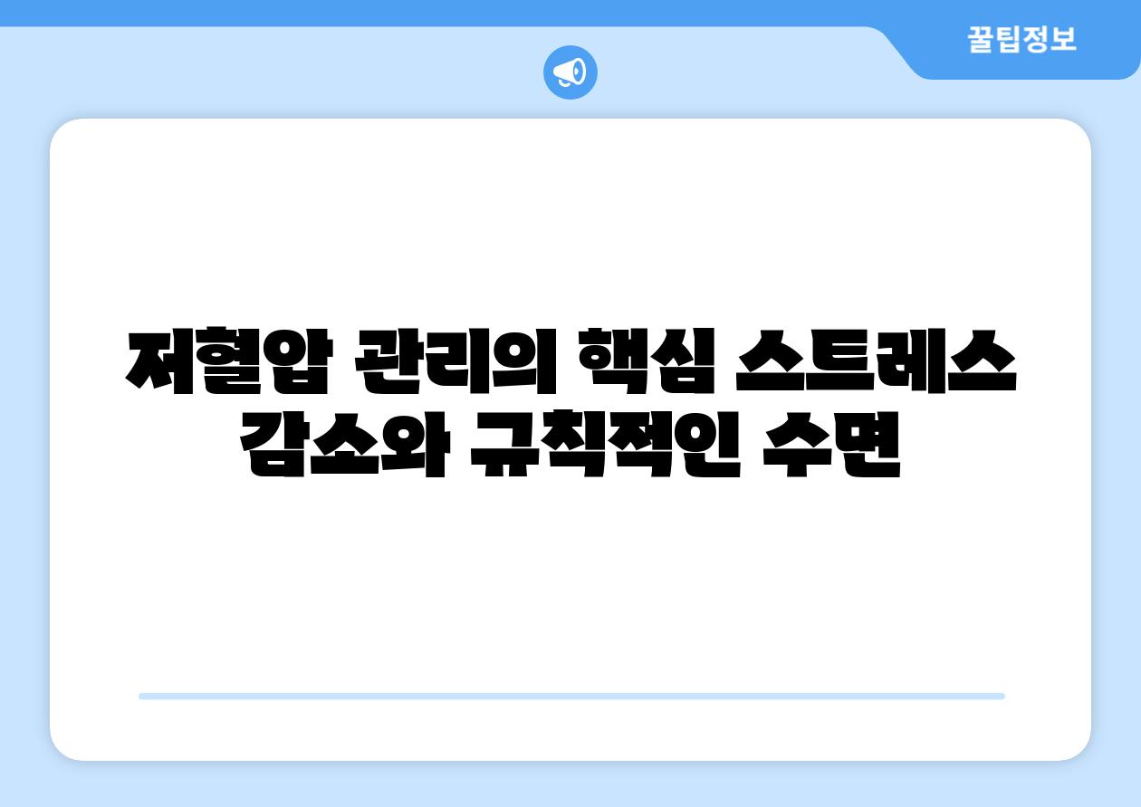 | 저혈압 관리의 핵심 스트레스 감소와 규칙적인 수면 |