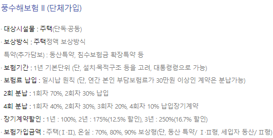 풍수해보험은 정부에서 보험료의 70% 이상을 지원하는 것으로 비율은 아래와 같습니다.