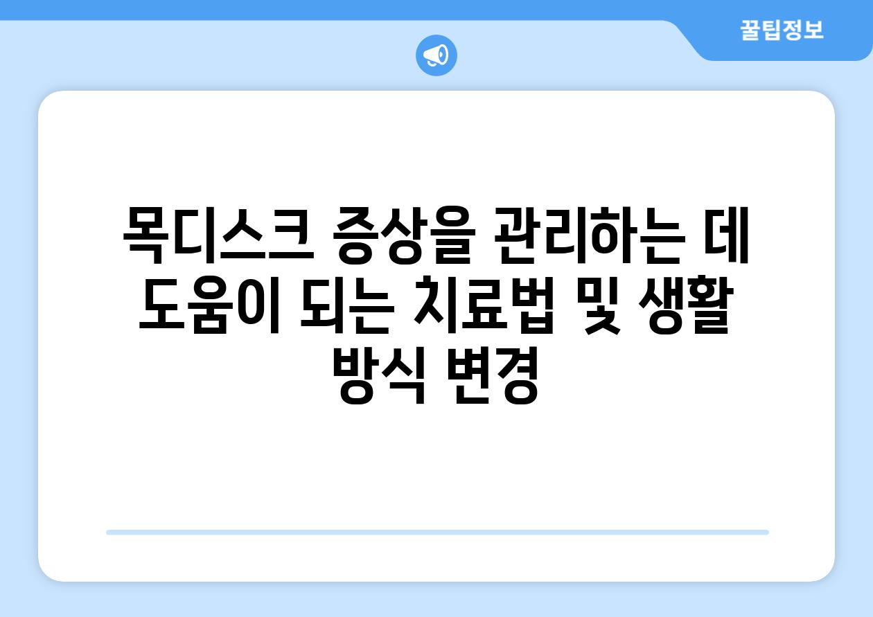 | 목디스크 증상을 관리하는 데 도움이 되는 치료법 및 생활 방식 변경 |