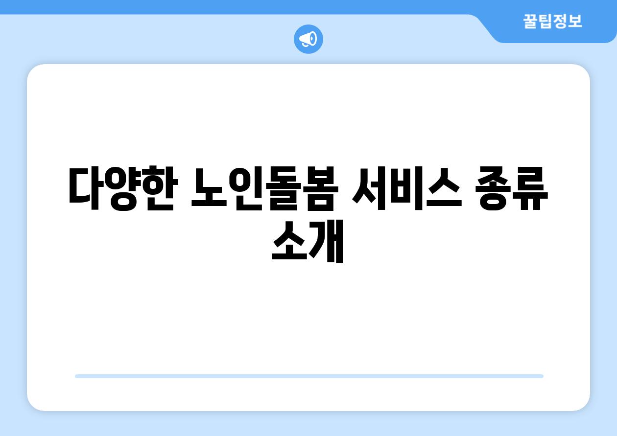 지역 노인돌봄 대상 노인의 다양한 요구 사항에 부응하기 위해 다양한 노인돌봄 서비스가 제공됩니다. 이러한 서비스는 다음과 같습니다.