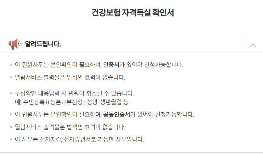 자격득실확인서 < 증명서 발급/확인 < 개인민원 < 민원여기요 | 국민건강보험 (nhis.or.kr)