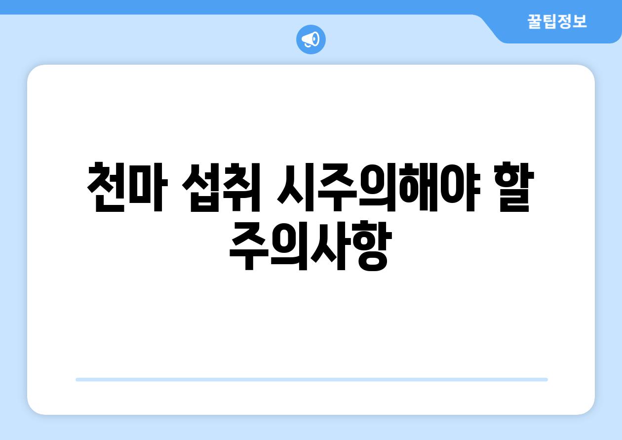 - 천마를 과도하게 복용하면 위장 문제가 발생할 수 있습니다.