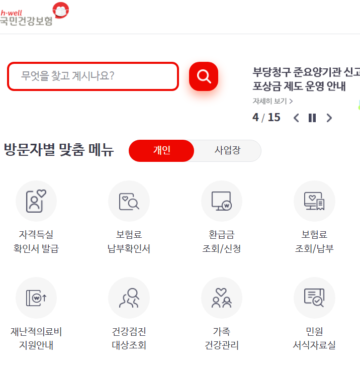인증을 진행하고 인증완료를 하면 다시 건강보험공단 홈페이지로 들어가집니다.