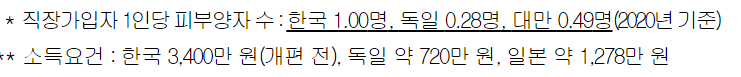 부담 능력에 따라 보험료를 납부하도록 하는 원칙 하에 해외 주요 국가의 피부양률 사례를 고려하여 1단계 개편에 이어 소득요건을 강화합니다.