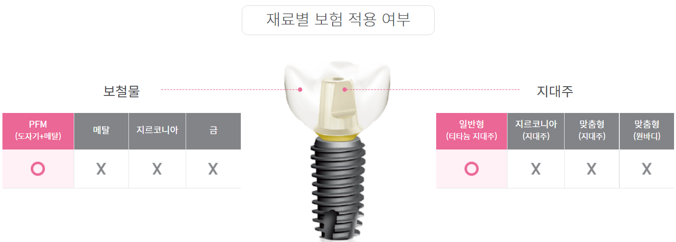 쉽게 말해 임플란트 자체에만 보험이 적용됩니다.