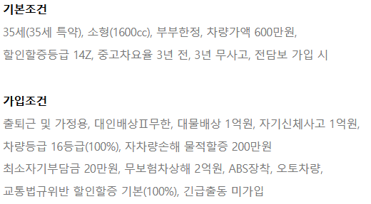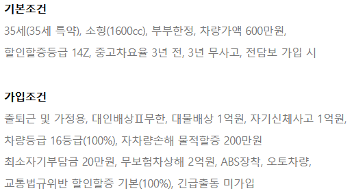 2. 주행거리 할인 특약 외 다른 특약이 약한 편이다.