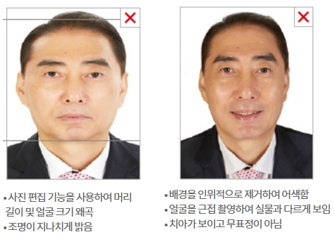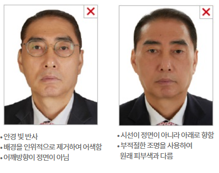 - 사진 편집프로그램 등을 사용하여 배경을 지우거나 흰색 배경에 인물을 임의로 합성한 사진은 불가