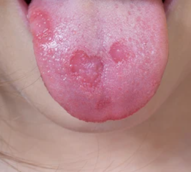 - 위축성 입안 칸디다증 : 혀와 입 천장에 홍반이 나타남